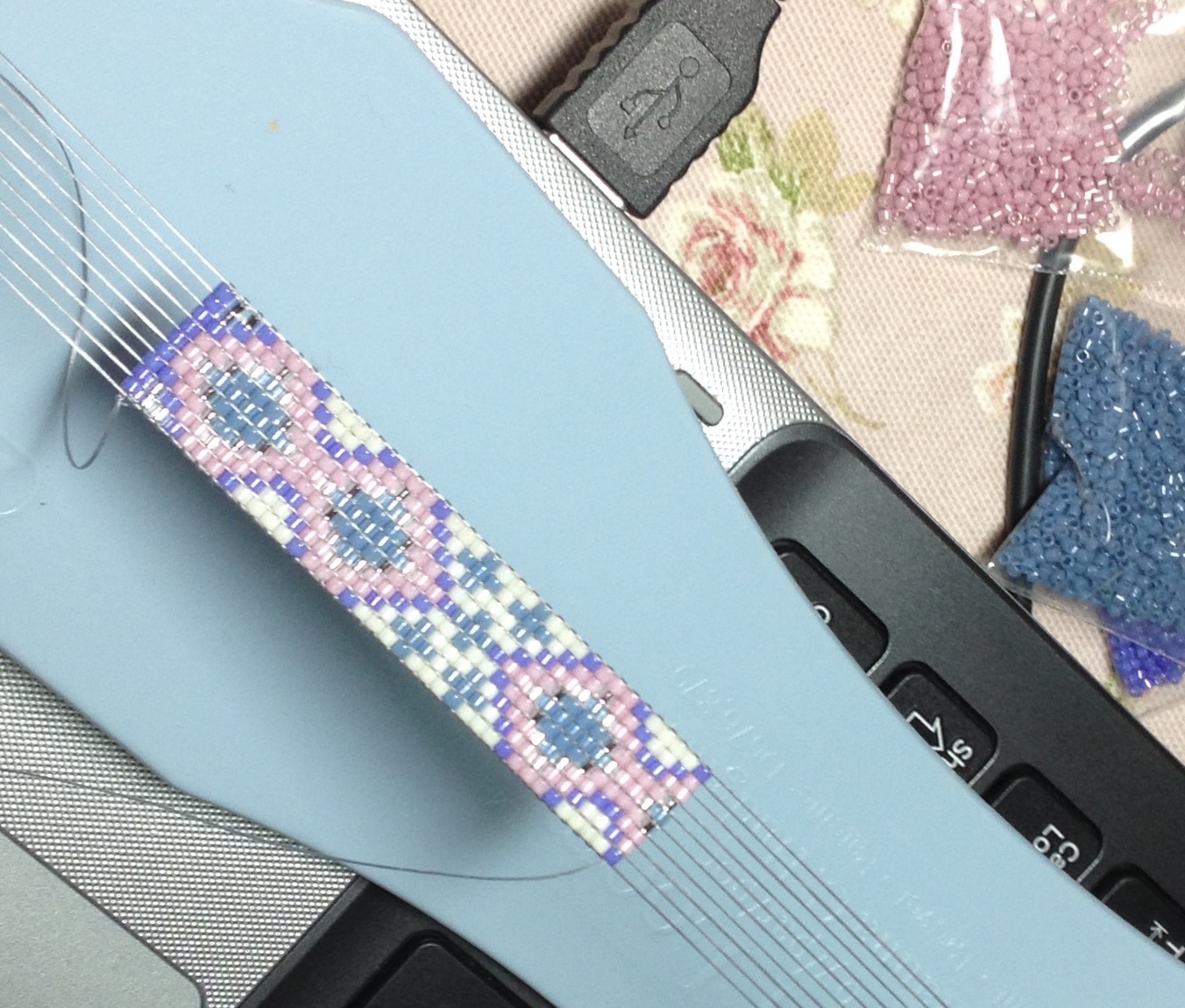 Geen kaartje maar een foto van mijn eerste zelfgemaakte armbandje. Het is even doorzetten en het gaat waarschijnlijk steeds handiger naarmate je er meer maakt. Maar ik ben trots op mijn werk en vooral mijn geduld.